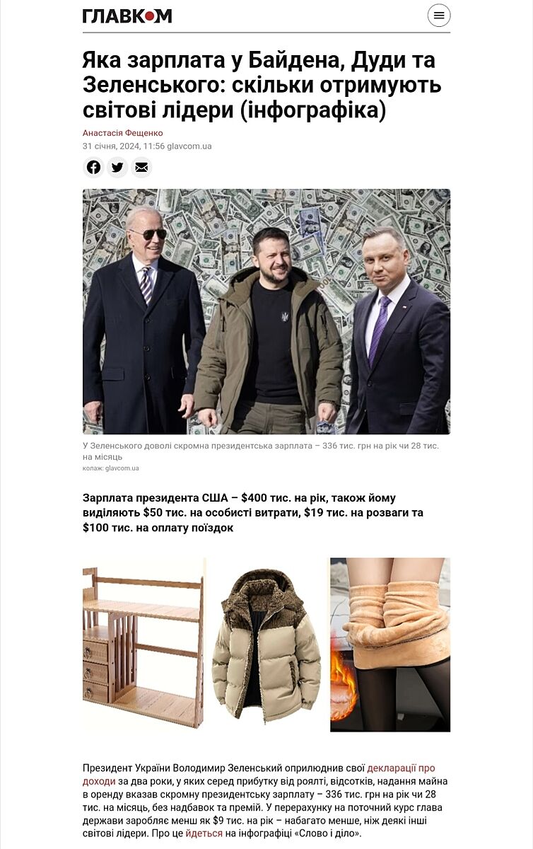 Та він не приховує статків. А що в куртці з секонда має ходити? Дивує таке. Тоді в Зеленського черевики вся зп.