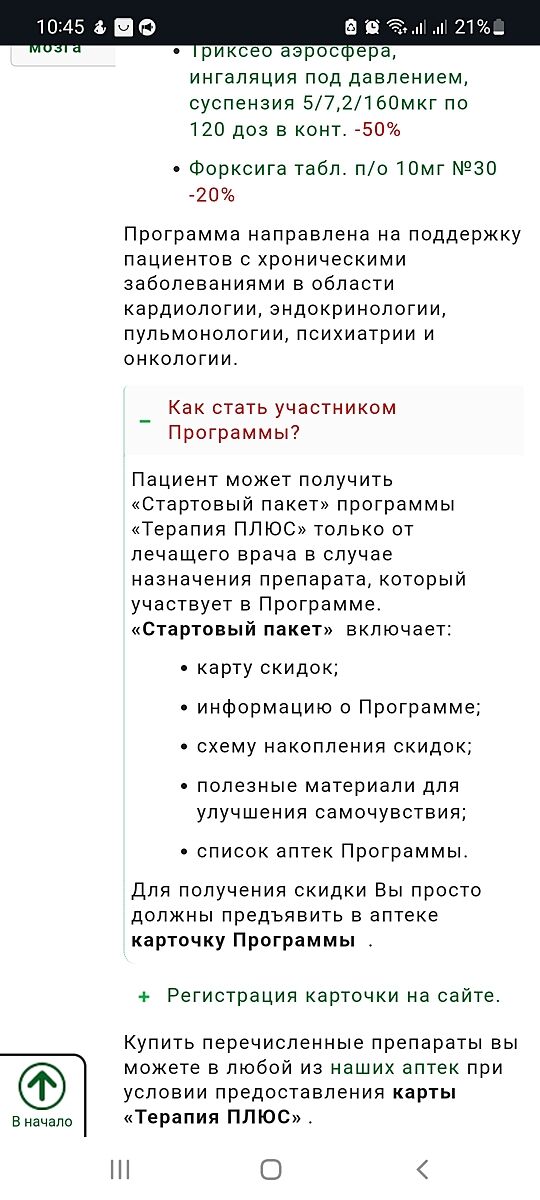 спасибо, у меня кстати есть карточка Терапии-плюс, выдавали на другой препарат, а сейчас маме при постановке диагноза диабет уже карту не предлагали, ответили кратко что скидок нет...