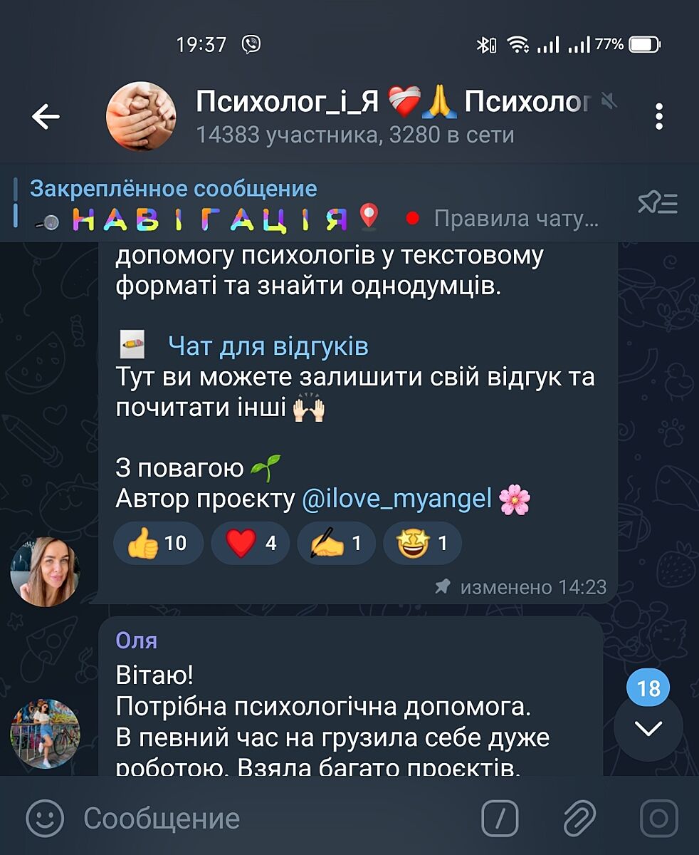 Есть группа в телеграм. Там можно написать по проблеме и получить бесплатную консультацию. Не помню одну или у нескольких специалистов по одной. Там же можно подобрать психолога и для дальнейшей работы.
