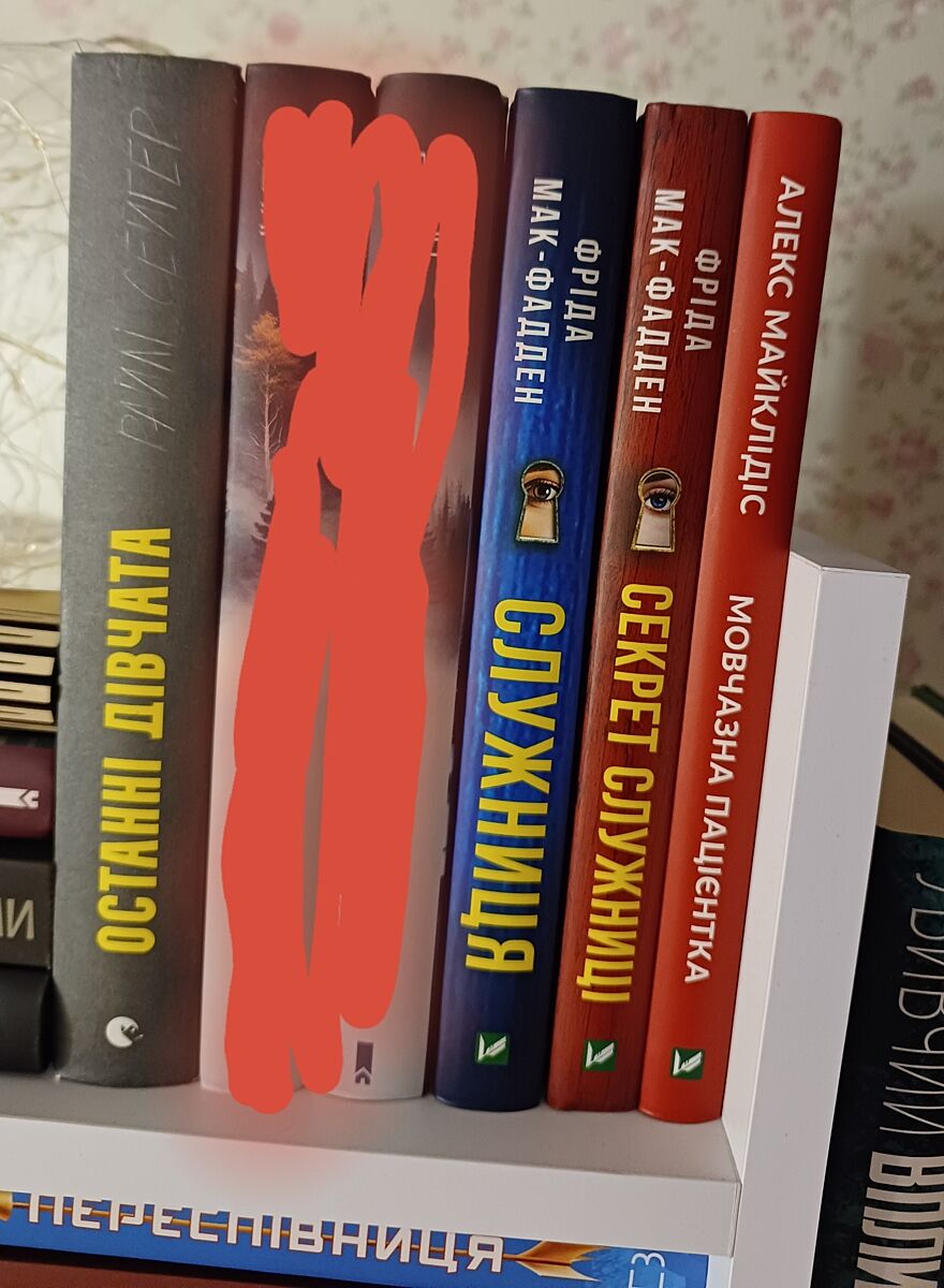 Выбирайте. Ну и еще Тесс Геррітсен серия про Риццоли и Айлз, Коллін Гувер Веріті, Рут Веа одне за одним, Ю Несбьо серрия про Харри Холе, Мэри Кубика, Меган Миранда, Гиллиан Флинн Острые предметы и Исчезнувшая