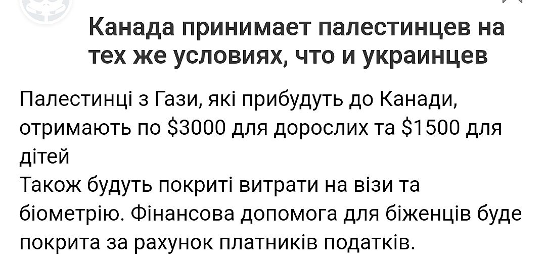 Канада принимает палестинцев на тех же условиях, что и украинцев