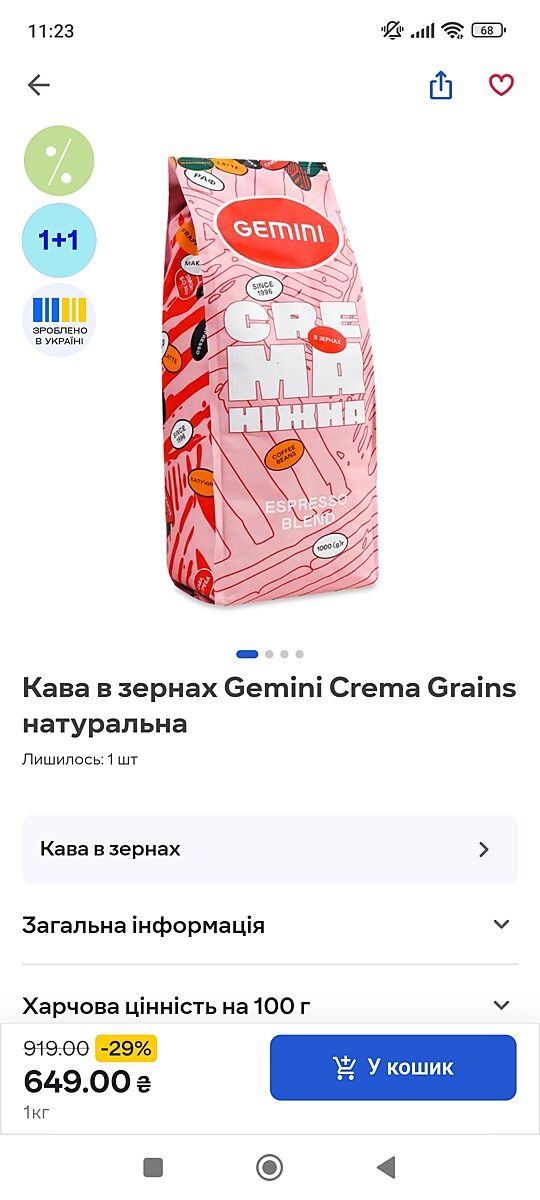 Хорошие цены в Сильпо и ещё если акция на кофе и ещё+ 1+1 то вообще шара