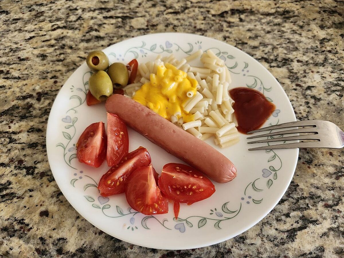 Були макарони, запечена курка і овочевий салат. Зараз доганяюся келихом просекко и M&Mс))
