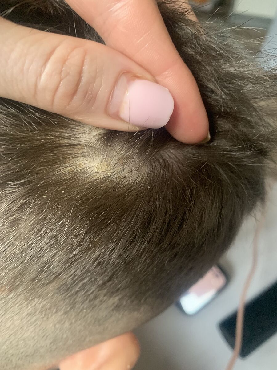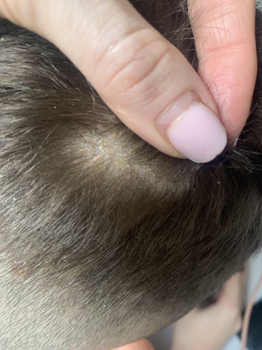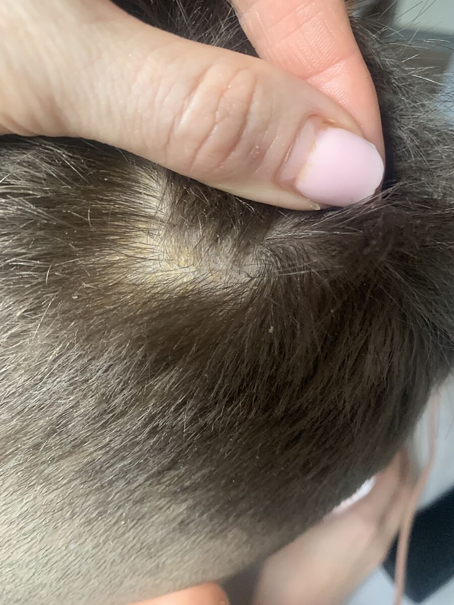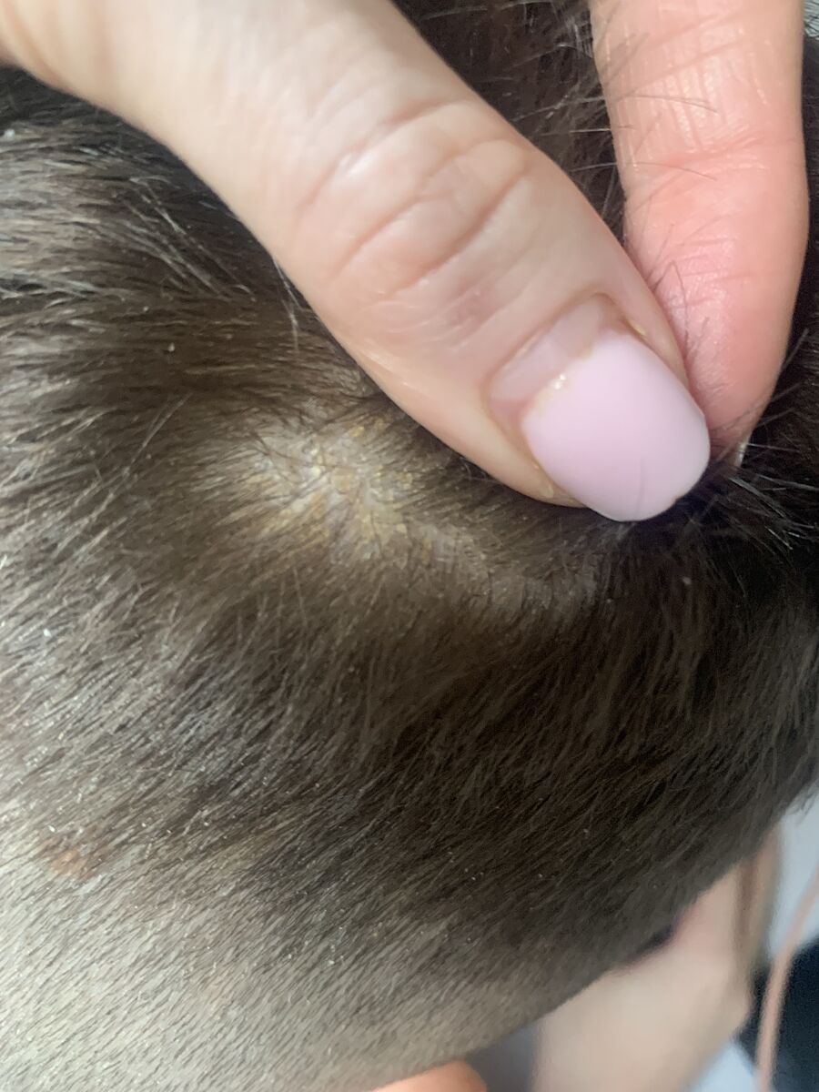 В моєї доньки таке, це себорейний дерматит. Миємо голову дермазолом, потім втираю лосьон спеціальний, але мало допомагає(