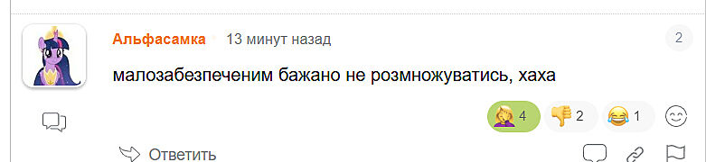 Ось для прикладу одна з останніх тем, де людина написала про капусту за 78 грн. І ось відповідь цієї істоти: ’малозабезпеченим бажано не розмножуватись, ха-ха’.