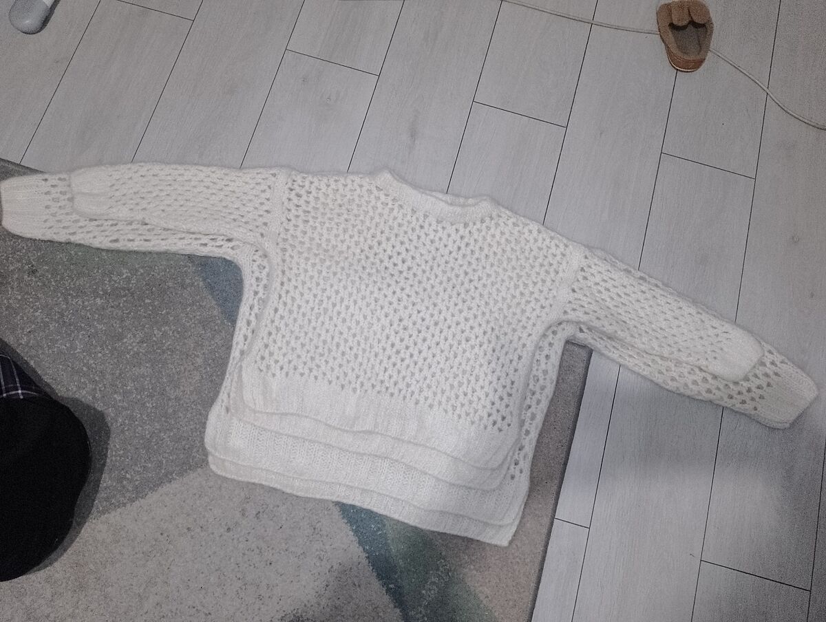 Вот к примеру кидмохер на шёлке клиентка простирала свитера своим детям . Сверху ещё не растянутый ,снизу уже немного после ВТО и первичной растяжки . В итоге за пару подходов привела свитера в нормальный вид и размер