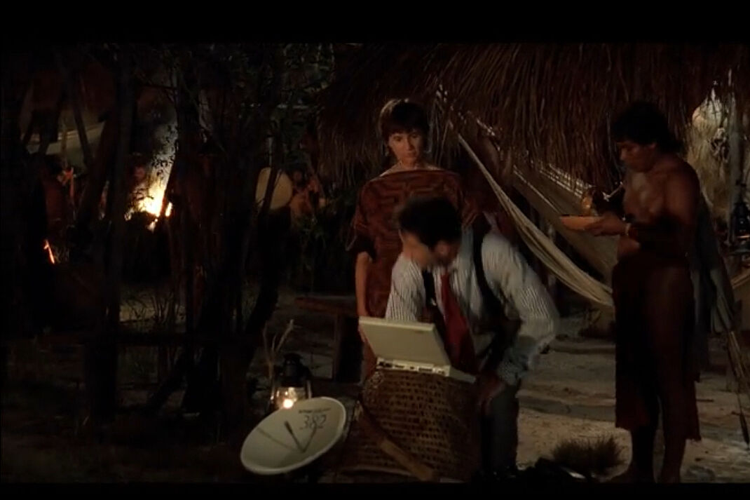 Питала тут назву фільму. Дякую дівчаткам, що допомогли. Дивлюсь: головний герой за тисячі кілометрів від цивілізації в Амазонії сидить собі в інтернеті. А фільм, на хвилиночку, 1994 року.