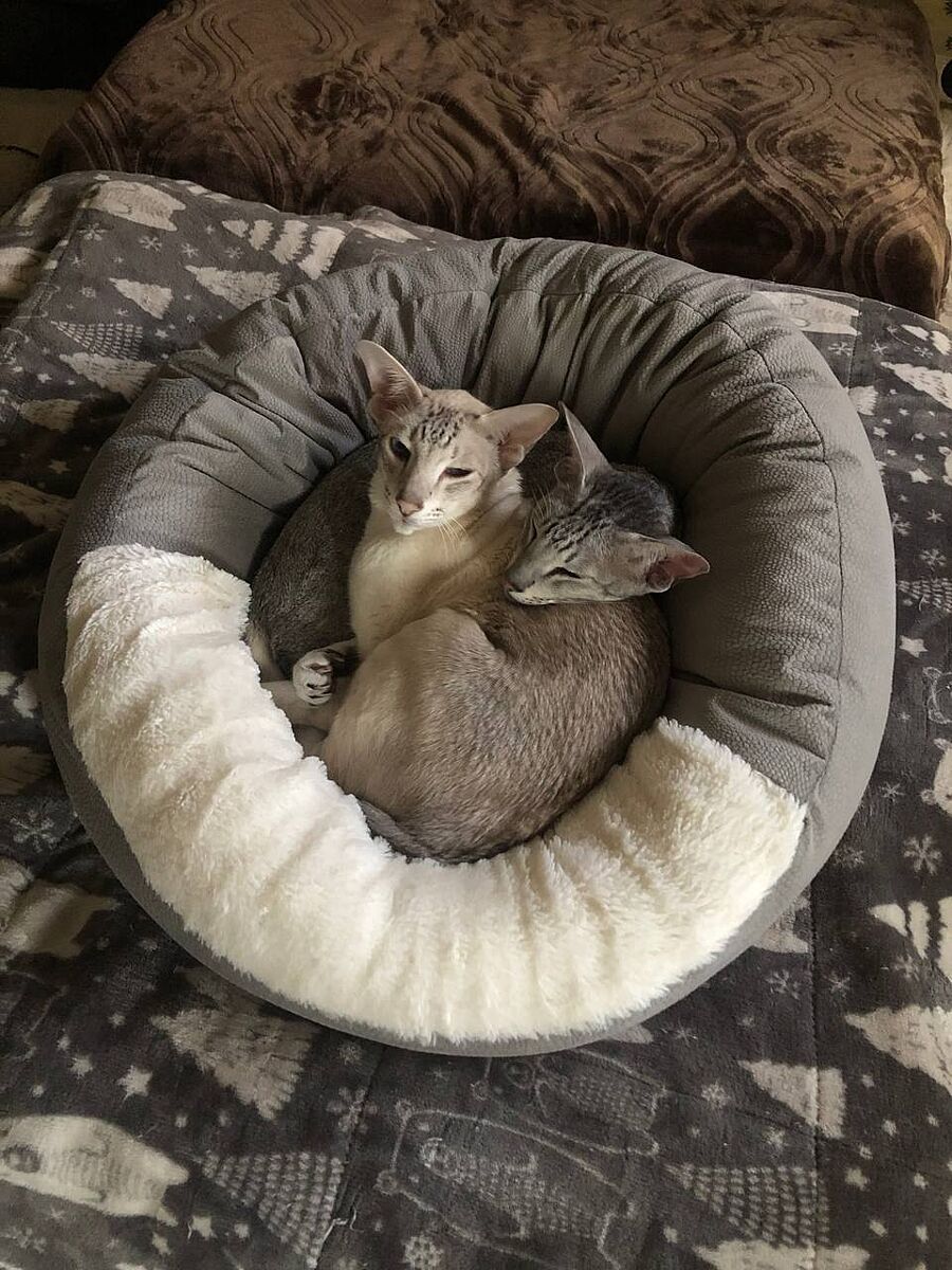 Нова в ванній жила кілька днів, запирали там, щоб вони без нас не спілкувались. Випускала ненадовго. Шкодувала, що привела вуличну, бо такий рик стояв, що капець. Але якось налагодилось. Не дружать, але спокійно співіснують зараз. Вже третій рік разом живуть. Обох люблю)