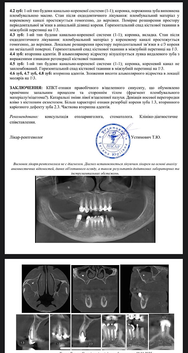 В мене кіста в носовій пазусі. Імпланти не ставлю. Йду на операцію по видаленню кісти, ще й перетинку будуть рівняти. Після того займусь імплатнами.