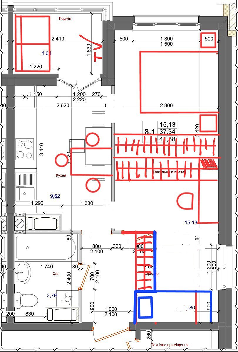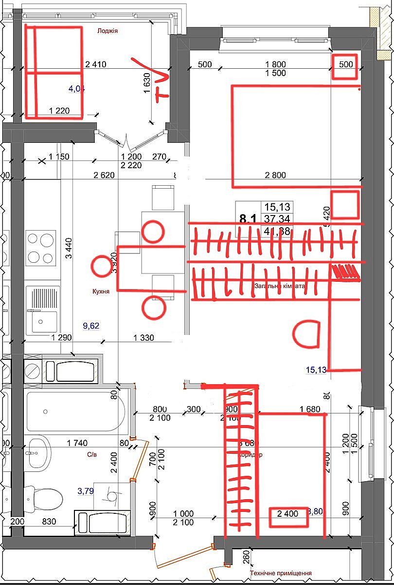 З кухнею треба на місці вже рішати. Там багато чого треба, це вже малювати треба з кухонщиком.