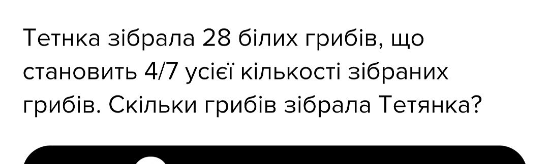 28:4 - отримаєте кількість грибів в одній частці. Результат множите на 7 - отримуєте відповідь