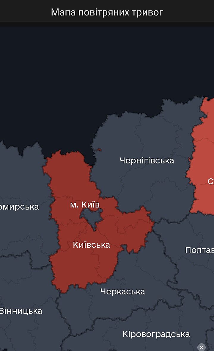 11:14 Київська область. Шахед навіть не думають збивати, він все ще літає. А що у нас в Києві,а давайте глянемо . Дирка без тривог.