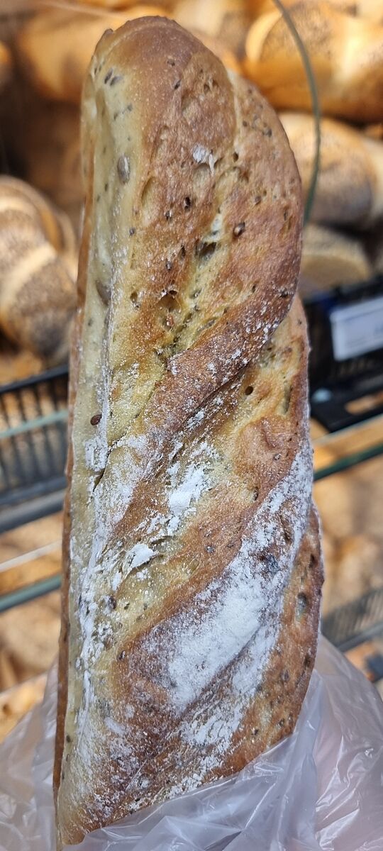 Своя выпечка в супермаркетах. Гречаный обычно везде вкусный. Берем гречаные багеты.