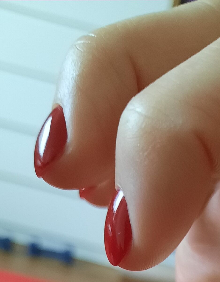 В мене це перший раз за життя гель. Свої тонкі і короткі. Тому анфас мені ок, а профіль - ну якось затовсто - в мене пласка пластинка а тут як в орла ключ.