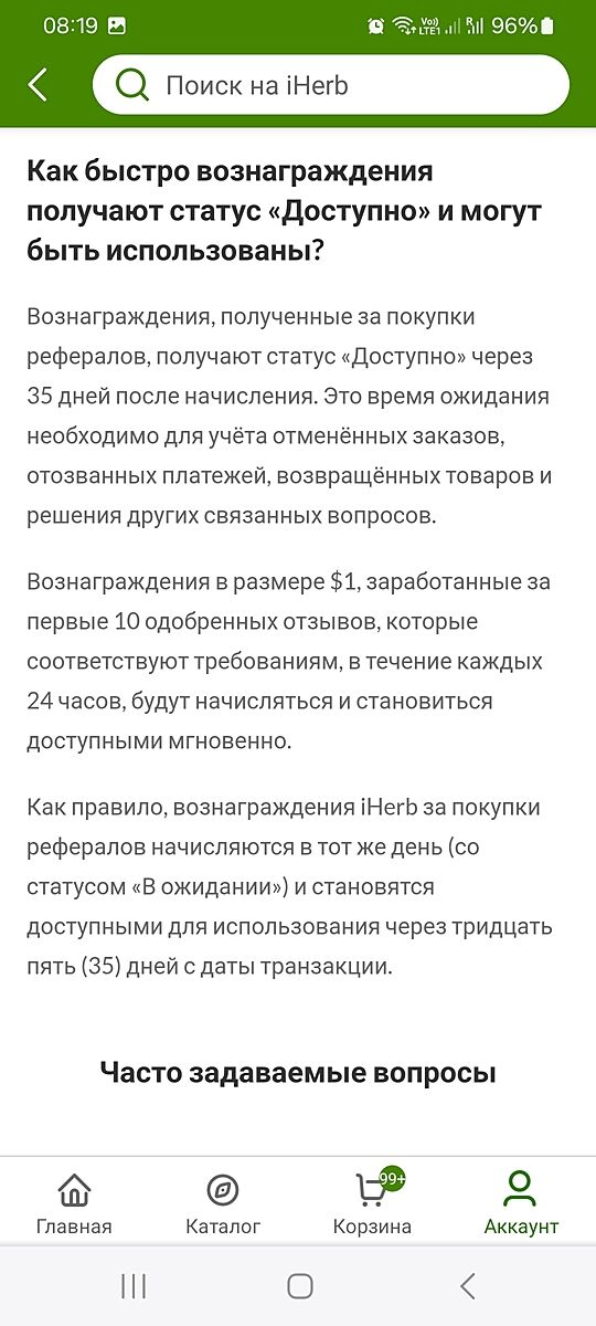 Iherb. Написала отзывы за прошлые покупки. Никаких вознаграждений не начислили