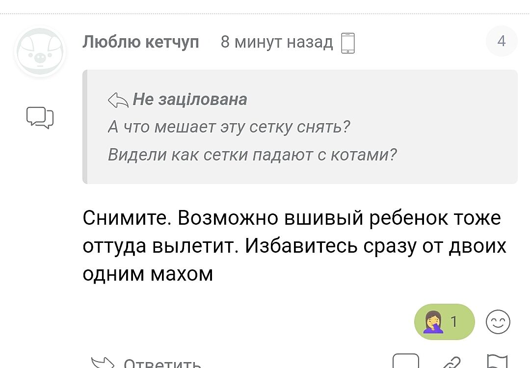 А вас не смущает что я выше писала, что сетка обязательна и для детей тоже, потому что выпасть могут. Вам уже нечего придумать что бы написать хоть что то?
