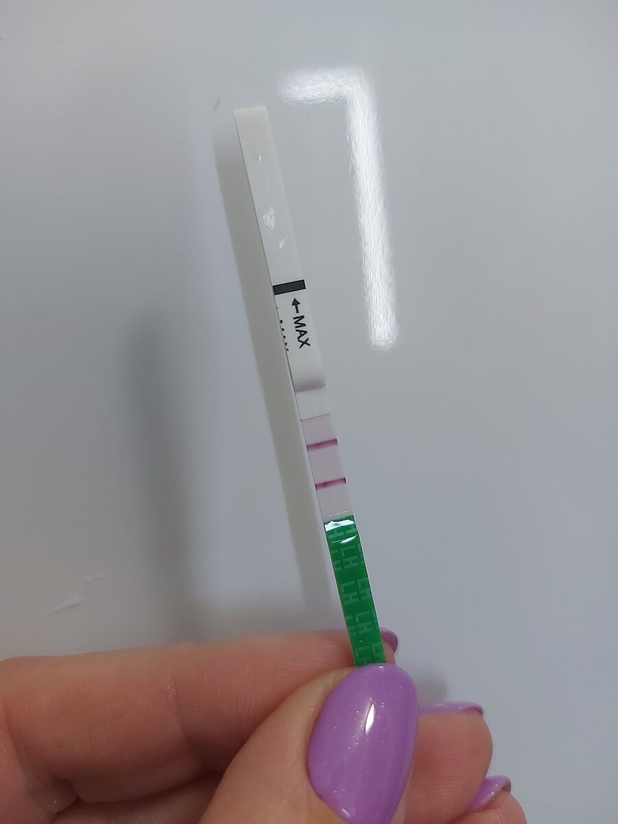 В овуляцию тестовая полоска ярче контрольной или такая же по яркости.