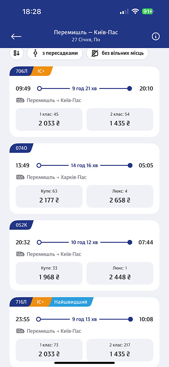 Я читала, що Інтерсіті ще можна купити , а от на звичайний потяг-проблема. Колись був Київ-Варшава..ото він був страшний. Зараз є такий також з Перемишля? Мені в Одесу треба з Німеччини взагалі.😁 Хочу через Київ, ще сестру провідати. А потім вже додому, в Одесу.
