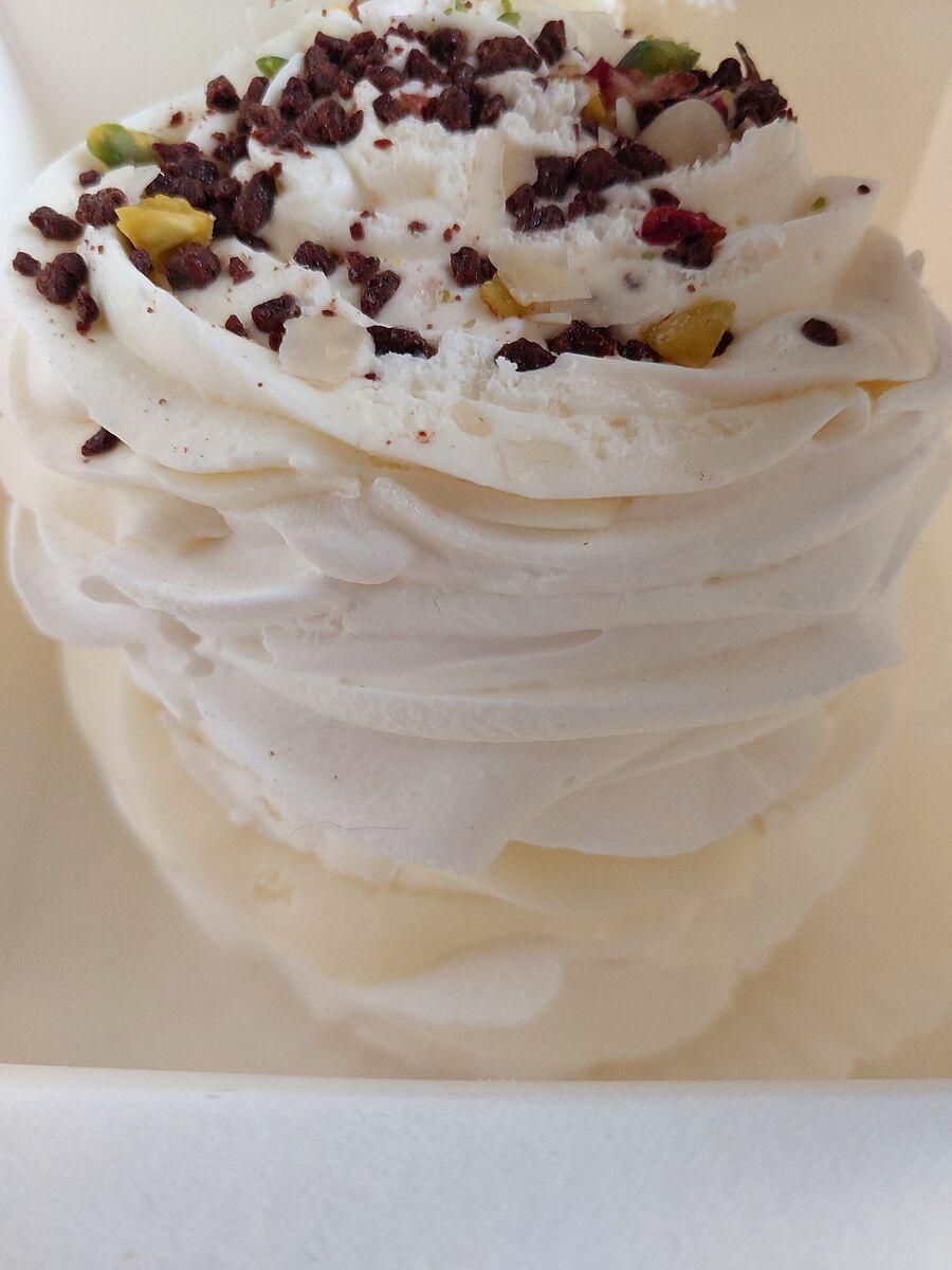 Там же елементарно - звичайне безе та збиті вершки, прикрашені фруктами.