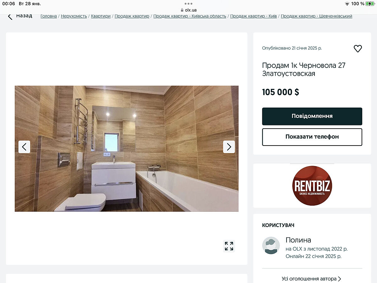 1к квартиру в норм районе в Киеве не купишь даже за 100к$