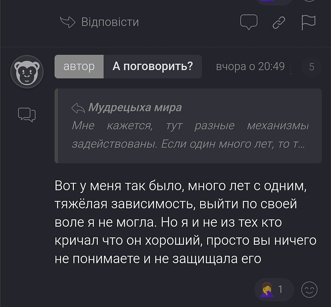 Девочки, это вы сейчас такие умные когда из каждого утюга про психологов, абьюзеров и уважение к себе. Ещё лет 10 назад такого и близко не было, а из зависимости самостоятельно выйти просто только на словах. Не понимаю травлю в сторону жертв, то же самое что оправдывать маньяка