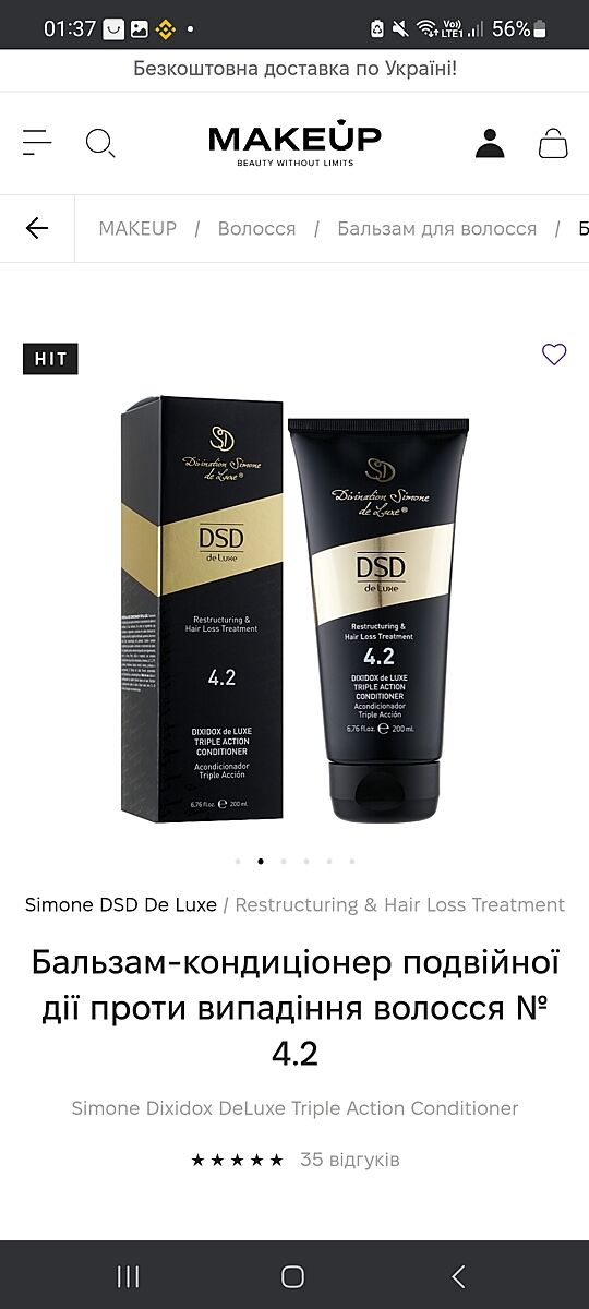 Хорошо увлажняет и разглаживает волосы dsd de luxe бальзам 4.2, держать 10-15 минут