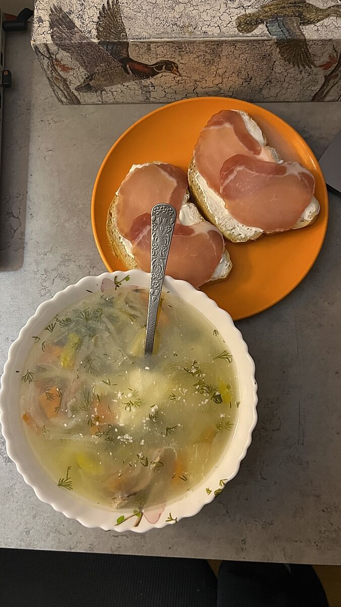 Сегодня куриный суп, селедка под шубой, лосось в духовке и пюре. Есть огурцы, помидоры, перец, зелень- ребёнку сделаю салат