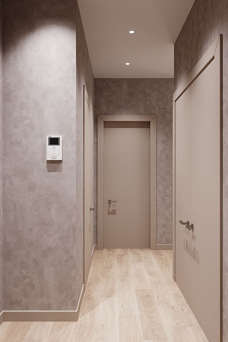 Как на 2 фото под штукатурку оттенок хороший , более теплый и под двери лучше чем с серым. Хотя сейчас сочетают с серым и теплые оттенки