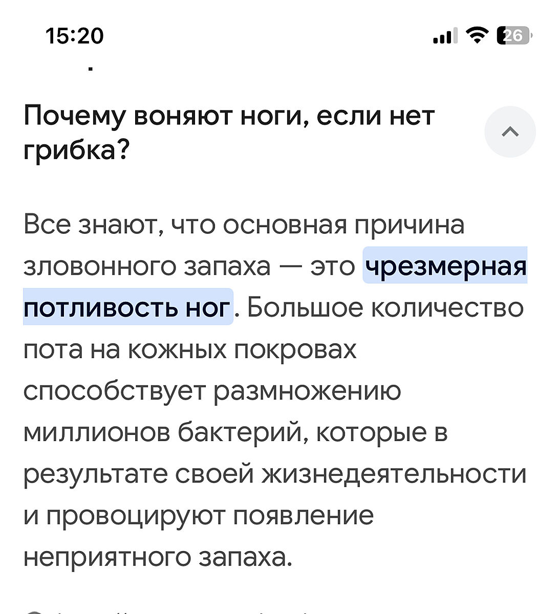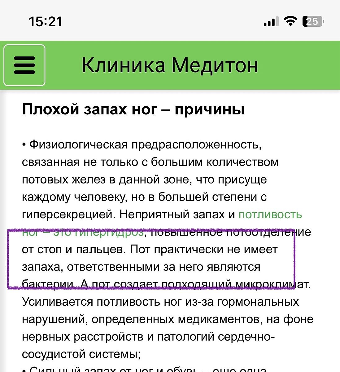 Я вам без укусов написала . Запах - это грибок. Уберите его с ног и забудете о проблеме. Есть куча кремов для ног