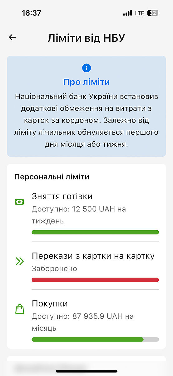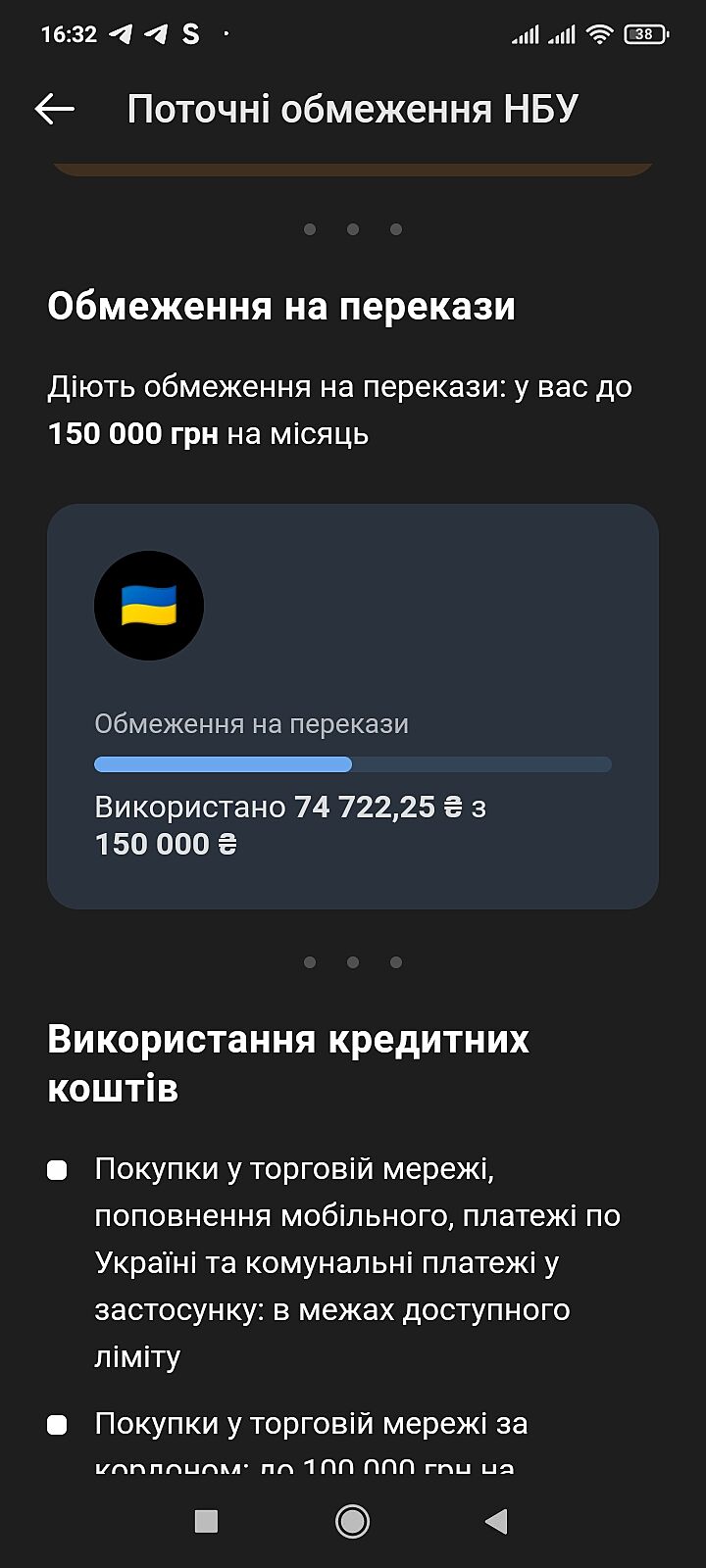 ▪️клієнти "середньої та "низької" груп ризику - ліміт 150 тис. грн/міс (з 1 червня - 100 тис. грн/міс).