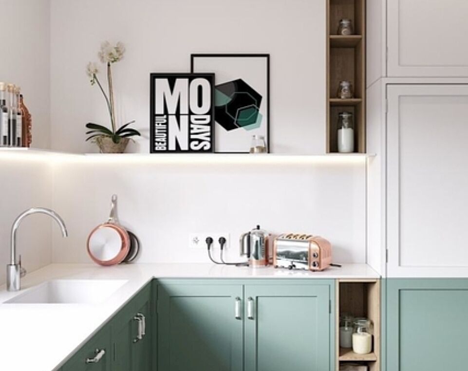Девочки, у меня над столешницей на кухне - плитка, но всего на части стены, а выше до потолка просто окрашена в белый. Чем можно немного украсить эту область, чтобы не смотрелась так уныло? Может вы видели какие-то идеи? Никакого стиля в интерьере нет. И вообще не представляю как ее обыграть?