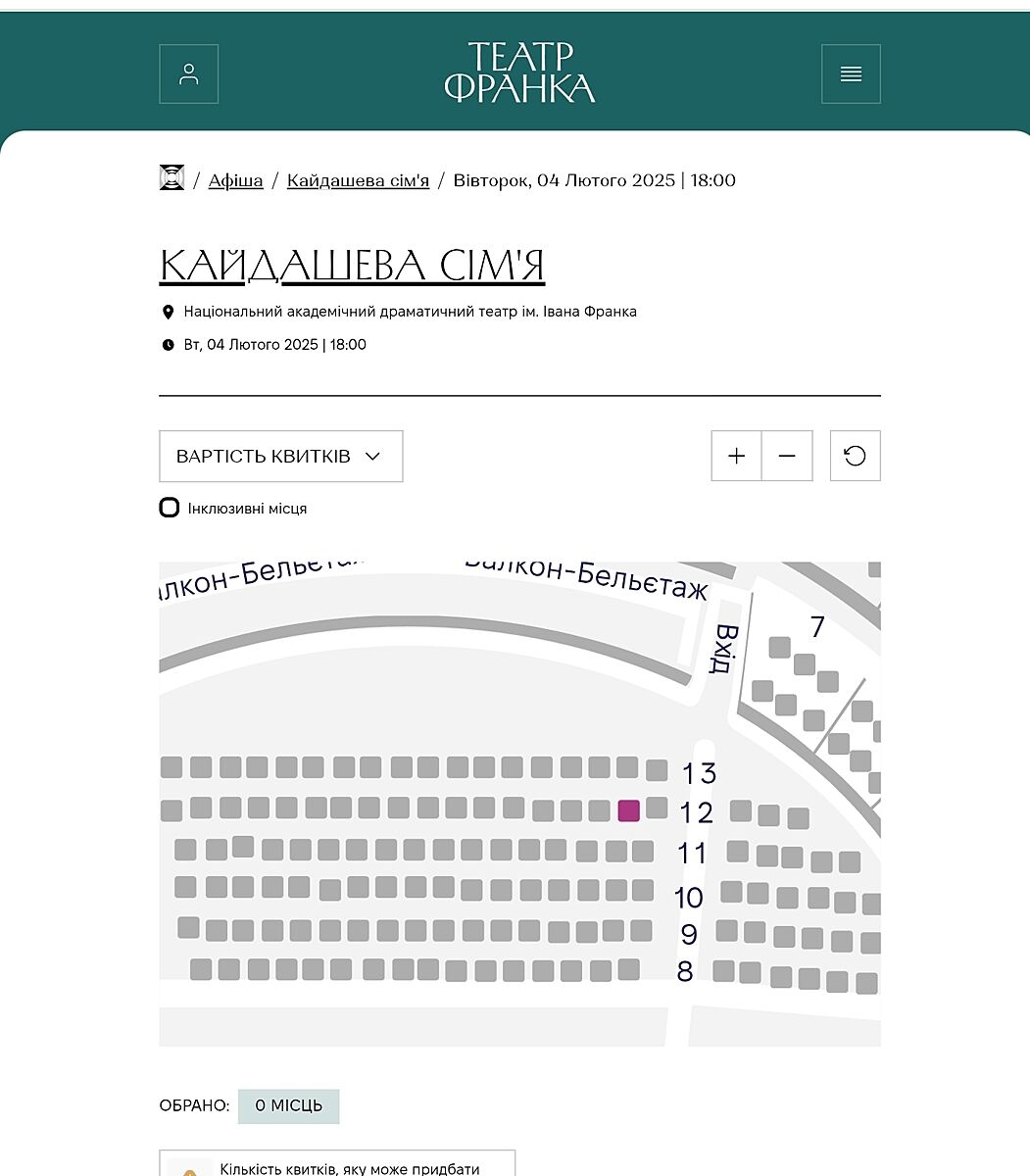 Яким чином купити квитки на Кайдашеву сімʼю в Івана Франка? Їх немає