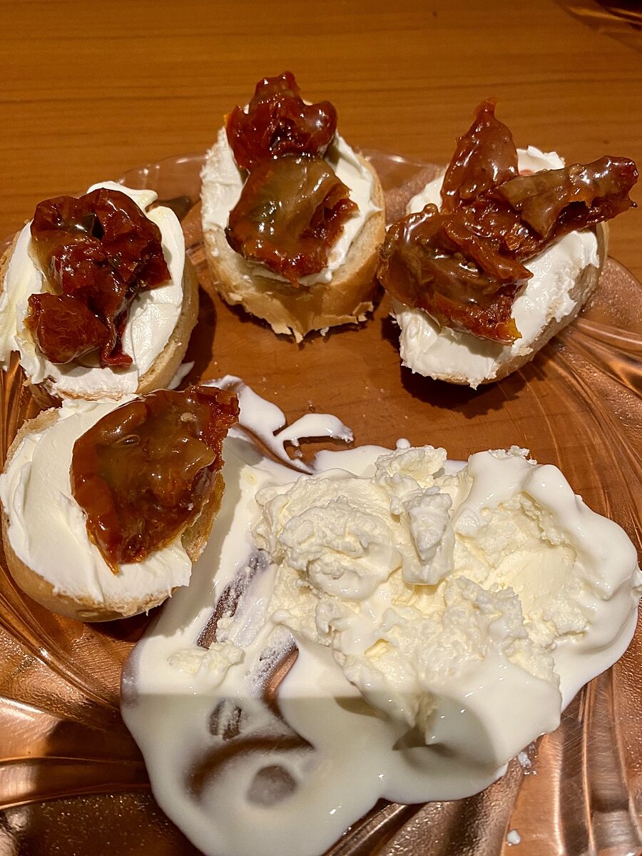 Люблю такой перекус бутики с вялеными помидорами, творожным сыром и обычный творог со сметаной ;)