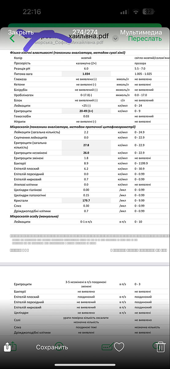 Мало пьет, есть проблемы по жкт, отсюда соли, соли царапают уретру, отсюда эритроциты, я так понимаю свежие. Если изменённые, это другой вопрос.