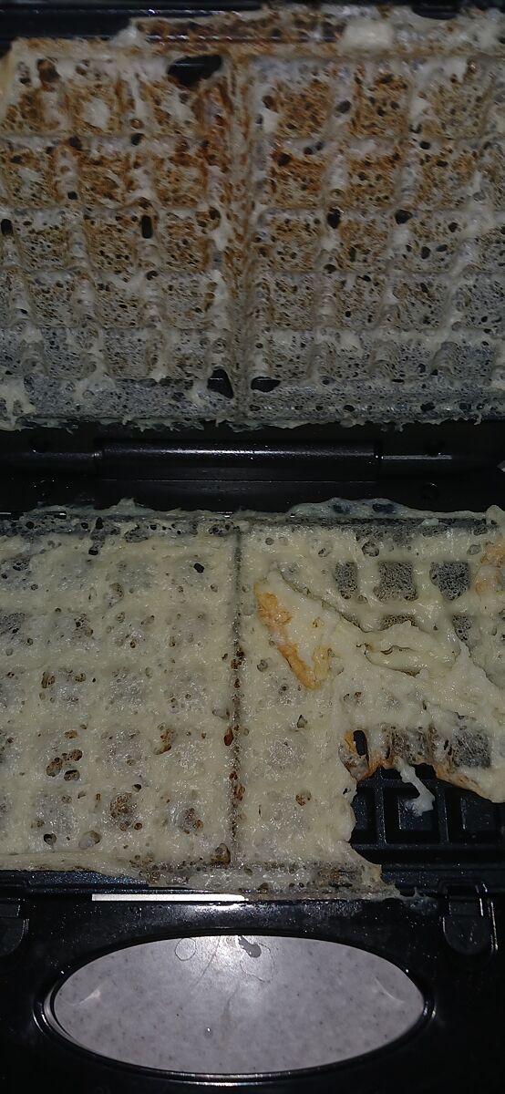 Хотіла зробити собі вафлі. Змішала творог, йогурт натуральний, яйце, борошно і розпушувач. І ось така фігня вийшла.