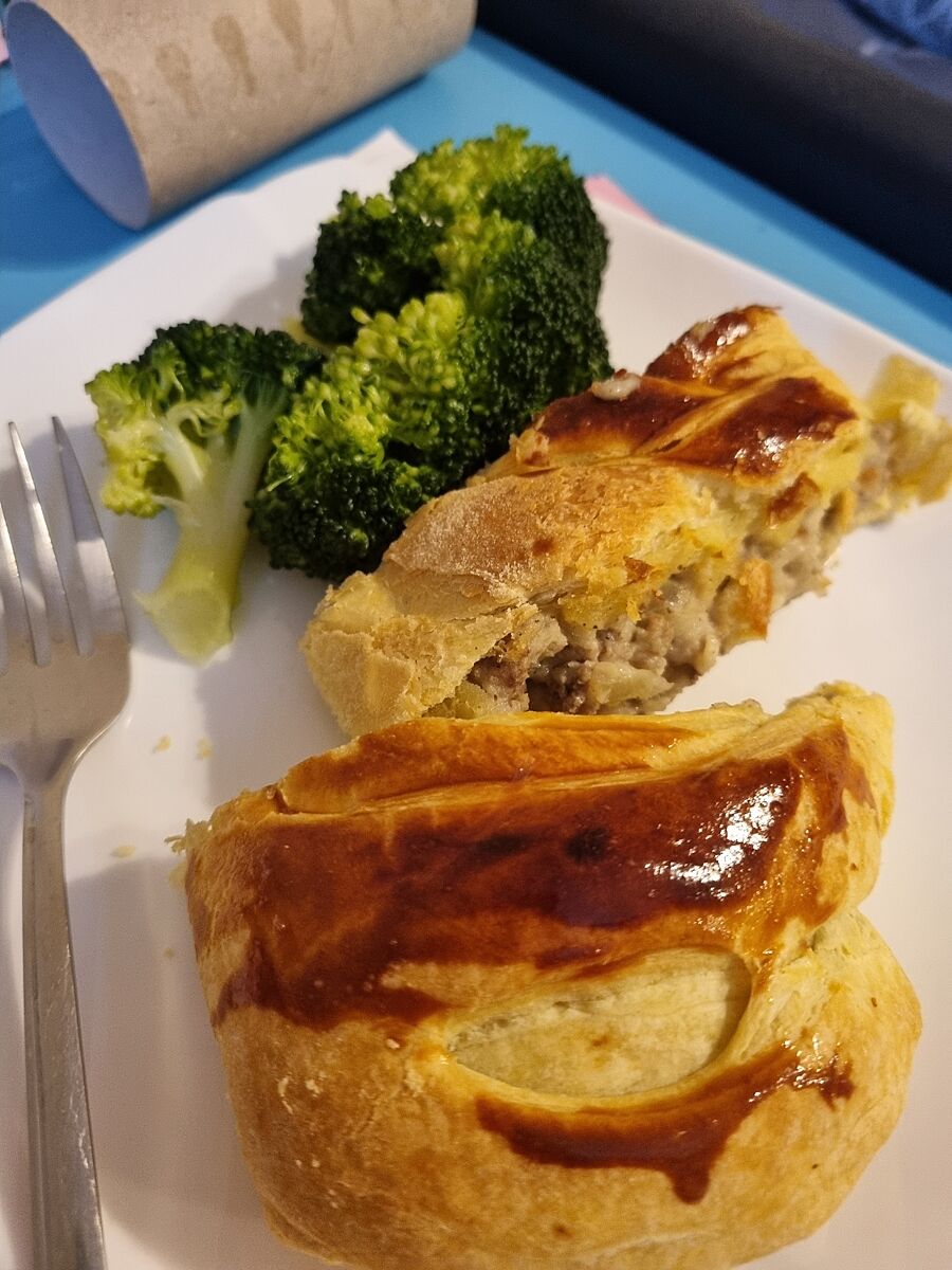 Сегодня отбивная с рисом. Вчера были рубленные котлетки с пюре