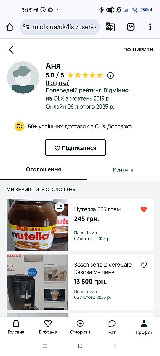 решила на Олх купить нутеллу, нашла продавца с товаром по хорошей цене, я так поняла, что поставил он ее ниже чем у других так как срок годности истекает и хочет быстрее продать. если доставка УкрПочтой, то пересылает по предоплате. у него в рейтинге было 3 удачных доставки олх и я повелась, оплатила и всё! больше он на мои сообщения не отвечает.