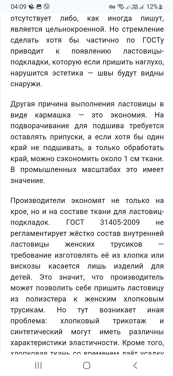 Вообще с трусами сейчас беда не только из-за ластовицы, они в целом какого-то анатомичного кроя не имеют, вся надежда на растяжимость ткани и она сама там как-то натянется где надо. Ну и игнорируют базовые ’нормы’ пошива, такие как резинка в зоне прилегание к ногам в хлопке, тогда трусы как шорты растягиваются и ветром колышатся, грубо говоря) и куча еще других нюансов