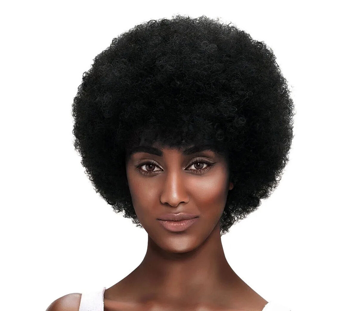 Это афроволосы, они очень жесткие и кучерявые как спиральки, на ваших картинках думаю натуральные волосы просто в форме стрижки, расчесать это почти нереально и очень больно. Про почти лысых впервые слышу … обычно девчонки плетут косы или носят парики.