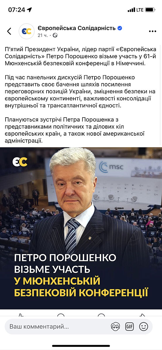 Про це він заявив сьогодні, 19 лютого 2022 року, під час свого виступу на Мюнхенській конференції з безпеки