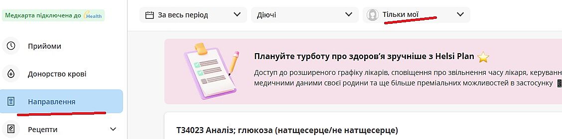 Закладка внизу ’Медкарта’ - Направлення - дитини
