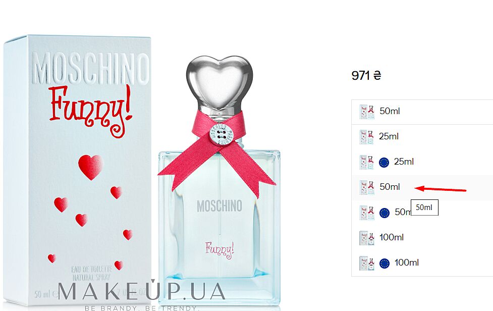 Пару месяцев уже смотрю на Moschino Funny в Мейк ап и в Еве. 50 мл стоит меньше 1000, а 25 мл больше 1000. В других магазинах дороже. Не пойму, в чем подвох))