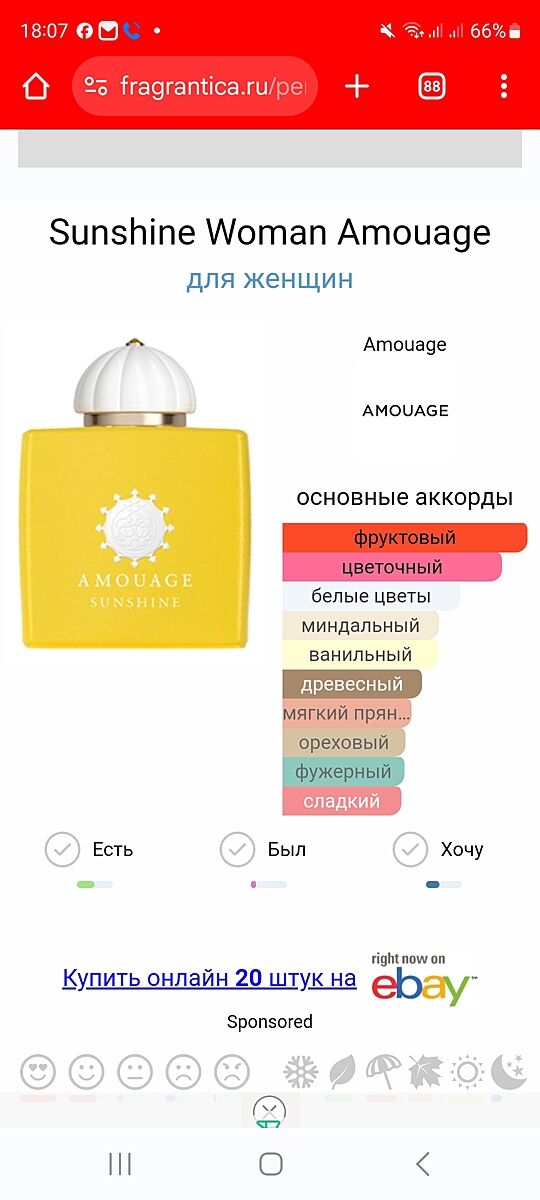 Амуаж есть,несколько пробников,зашел мне только желтый. Не помню название. Что то из цикла солнечное лето🤭,очень классный.