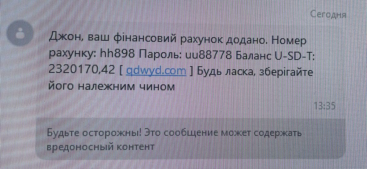 так переживають за надійність рахунку, що одразу і логін і пароль в смсці пишуть