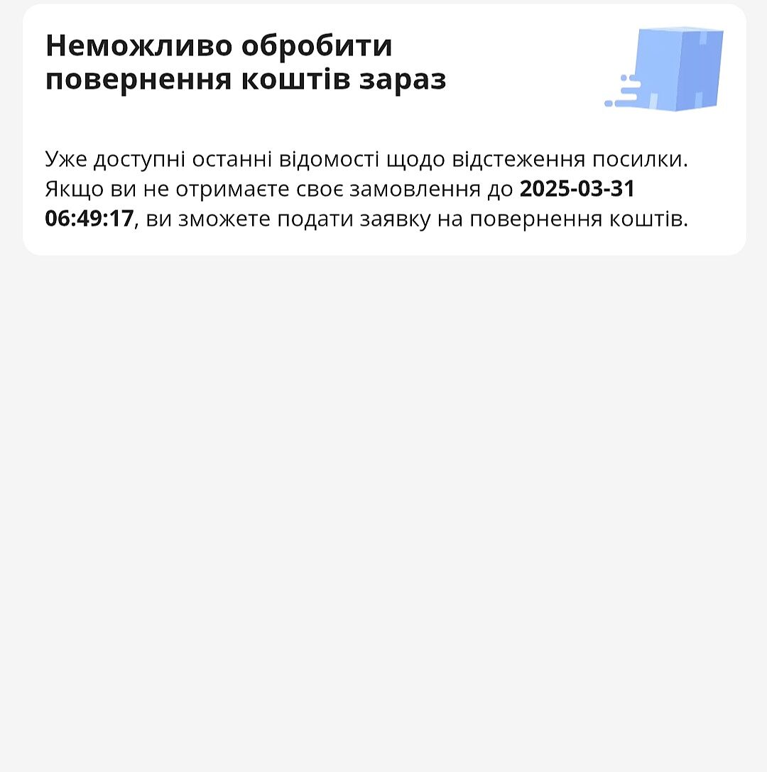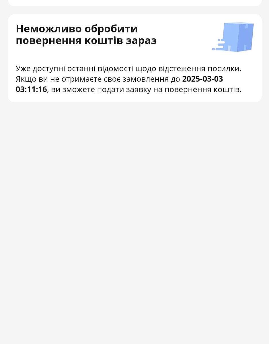 Прод продовжує і продовжує терміни. А посилки як зависли в аеропорту, так і висять. Я боюся, що закриється за давністю і все( в мене колись так було, але там була копійчана фігня, а тут все ж норм гроші. Я би вже повернула грошима. Продавцю писала - каже, чекайте. Трекінг не оновлюється з 21 грудня😔
