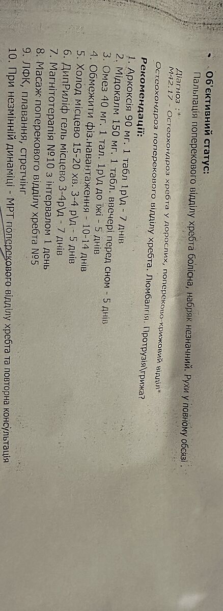лікар дивний навіть на оглянув просто зі слів поставив остеохондроз і ліки, сказав навіть якщо по мрт буде грижа чи протрузія, то лікування не зміниться