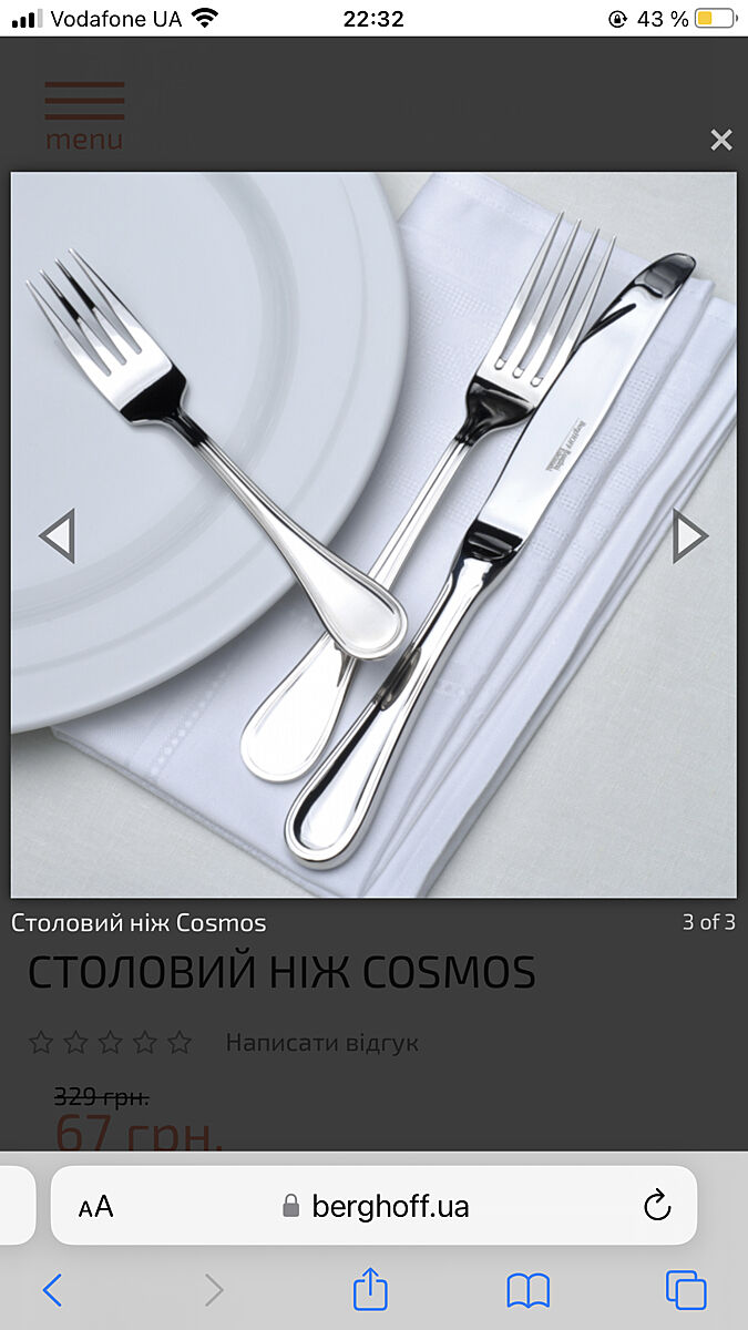 Купила Berghoff, ножі закусочні , виделки і ложки, з покриттям, мию в пмм, блищать