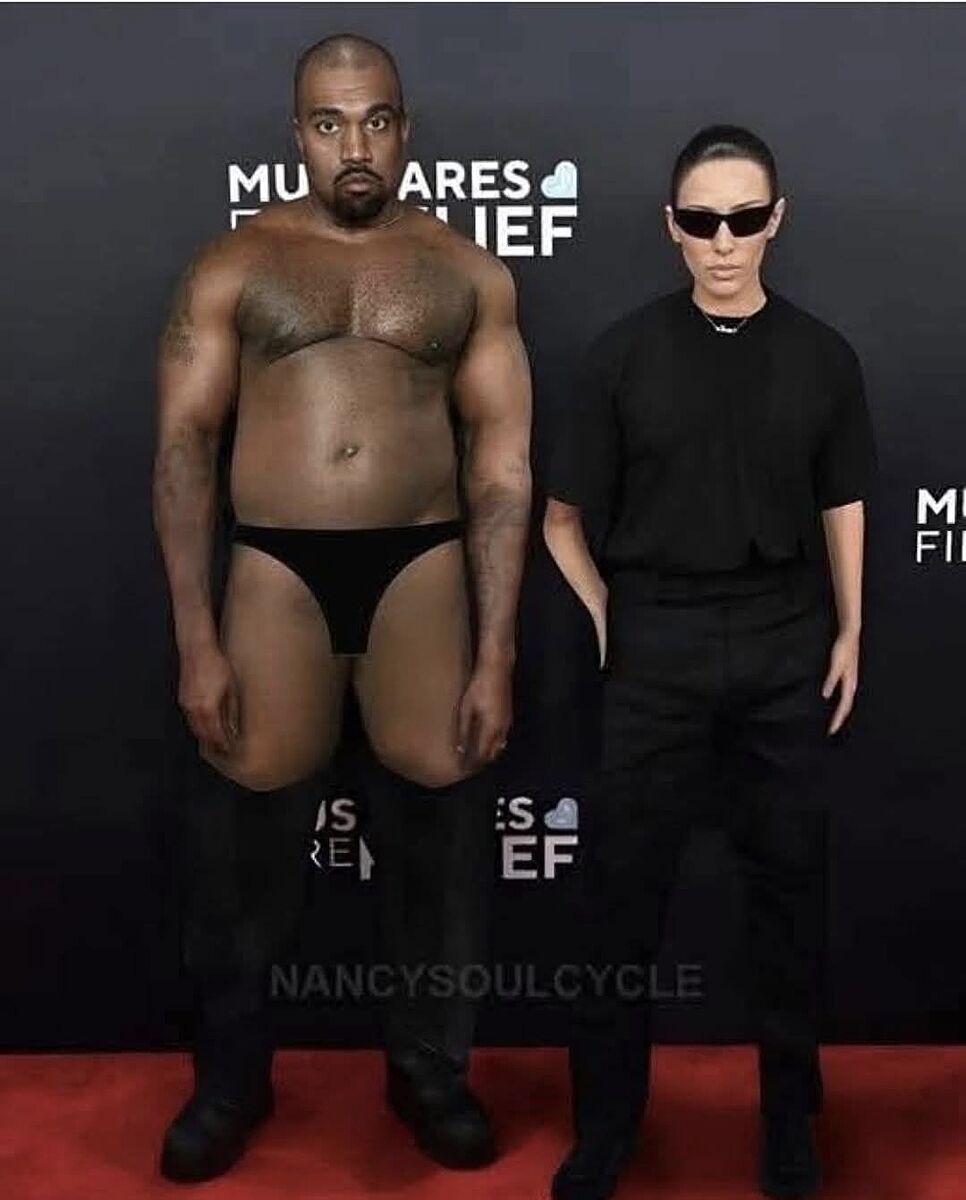 В том, что это ИИ сделал. У Канье там ещё заботливо трусы дорисованы, по твитеру ходила фотка, где оных нет и достоинство сделали микро-маленьким