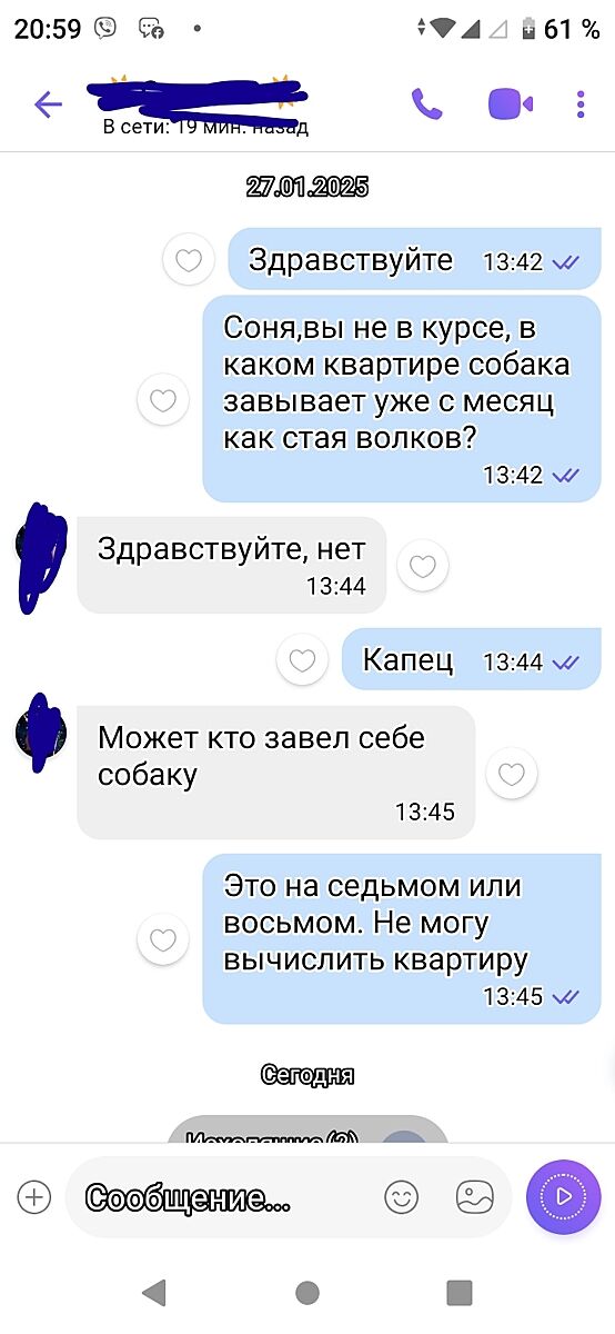 Я понимаю, до 22.00 шуметь имеют право, но есть же предел наглости. Если не прекратят и сейчас, то писать заяву в полицию, или в общество животных или ещё куда? Не считая того чтобы выяснять отношения или портить дверь