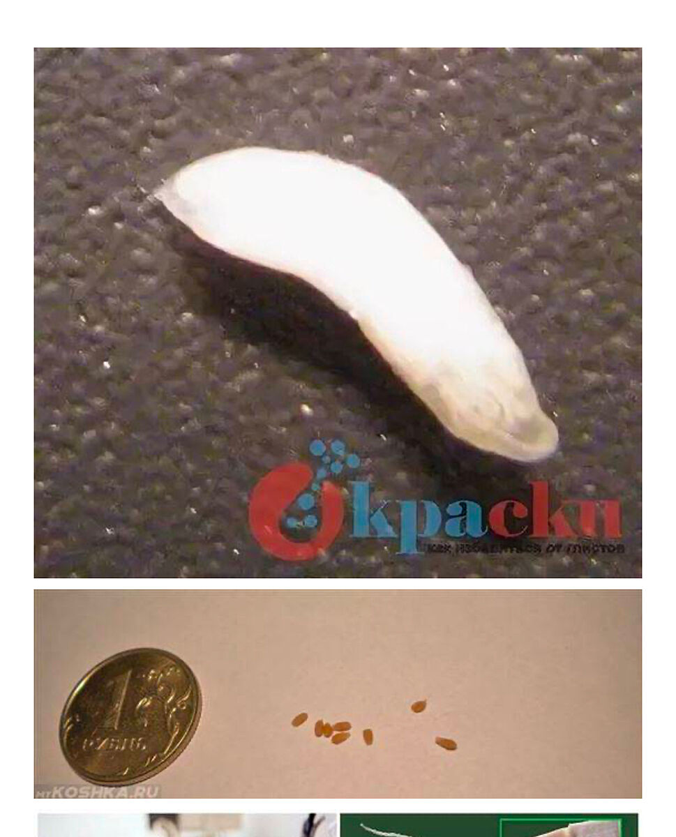 Я нашла фото как выглядят яйца глистов, это они точно… блох яйца меньше в два раза и идеально округлые и белые, а тут вот такие как на этом фото, фото с интернета с сайта ветклиники